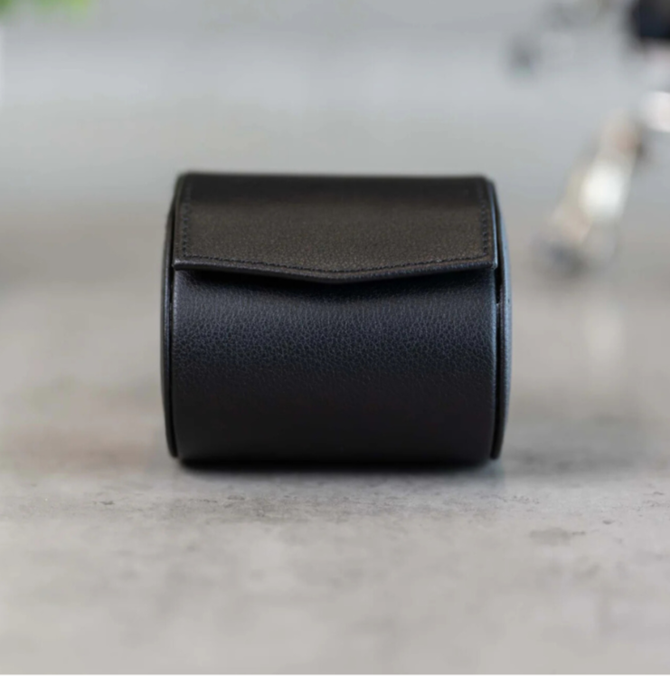 The single watch roll is the perfect home for your favourite watch, it is ideal to carry your watch with you on any occasion, or for daily storage. It is handmade with fine black genuine leather.